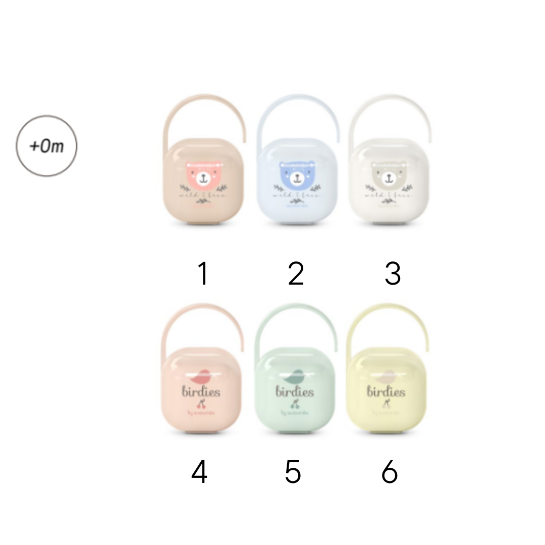 Porta-chupetas Suavinex com capacidade para guardar até 2 chupetas.
