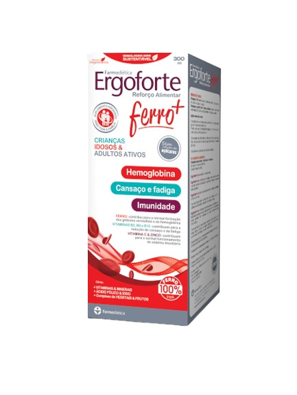 Ergoforte® Ferro+ é um suplemento alimentar que apresenta uma fórmula completa com um alto teor em ferro, vitaminas do complexo B, vitamina C e minerais, reforçada com uma cuidadosa seleção de legumes e ainda frutos, especialmente desenvolvido para complementar o regime alimentar diário e compensar as necessidades nutricionais.